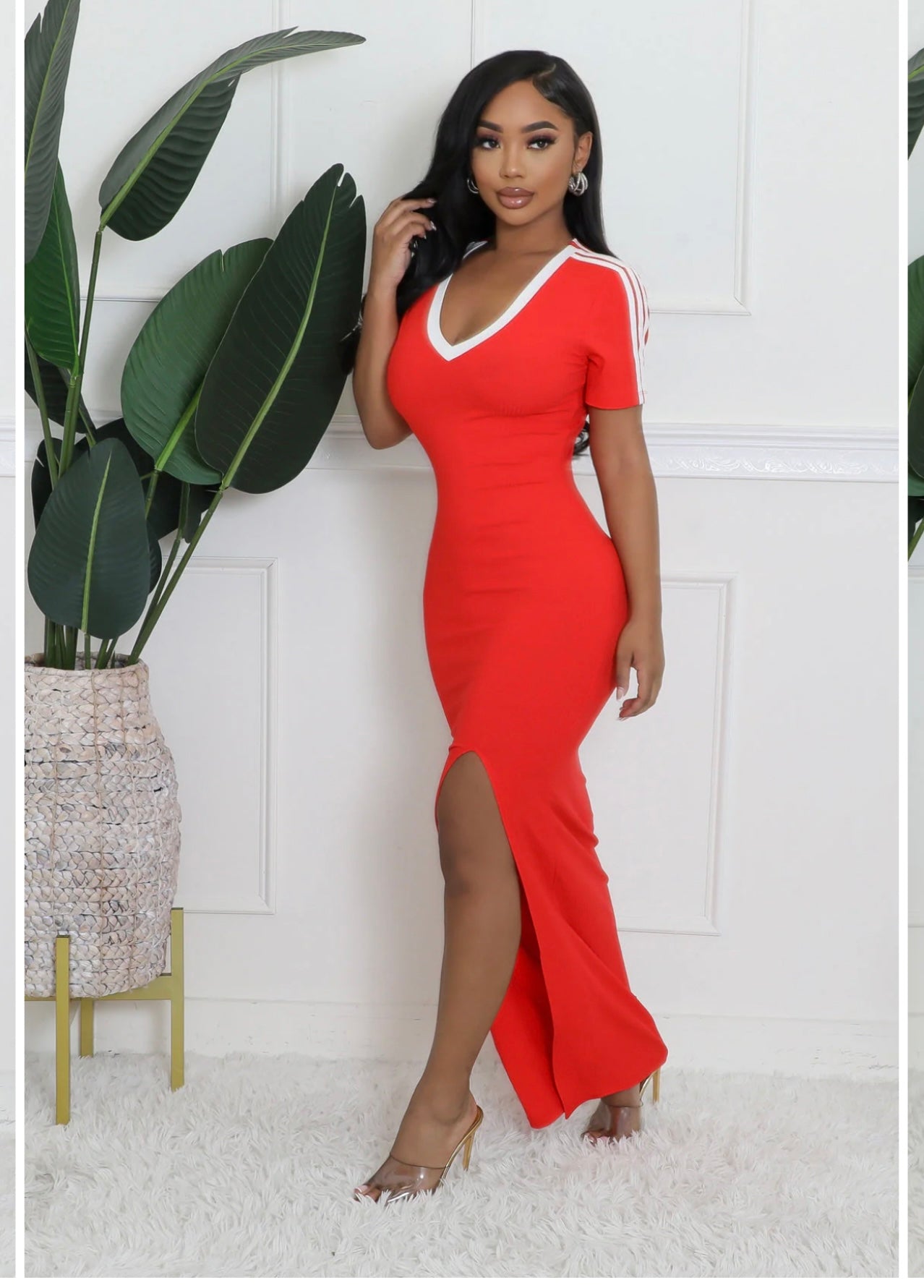 This dress features a stylish striped design and a side slit, creating a unique and flattering look. Made from high-quality materials, it offers both comfort and style. Perfect for any occasion, this dress will make you stand out while feeling confident and fashionable.
